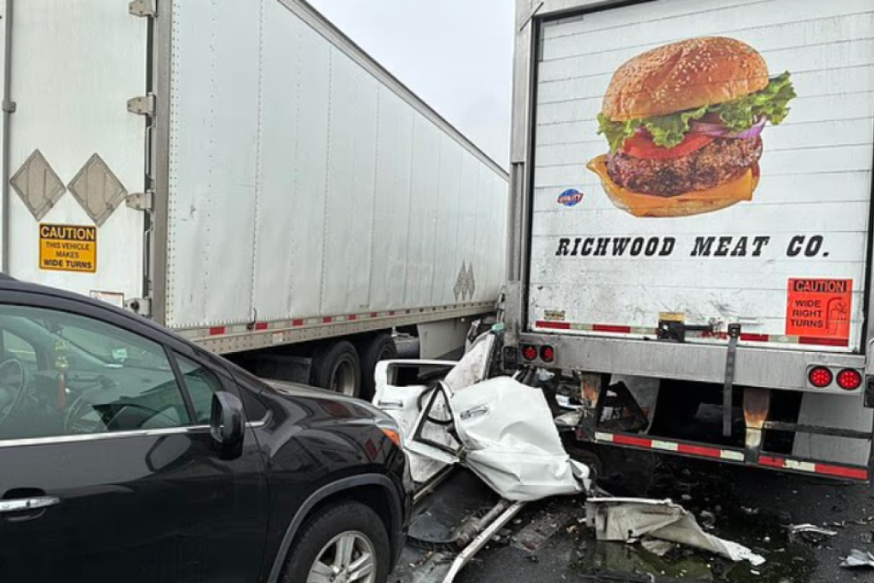 Brenda sekondash, rruga u shndërrua në një masiv makinash të shkatërruara dhe kamionësh të goditur, ndërsa mbeturinat u shpërndanë në shumë korsi. Fotot e publikuara nga Departamenti i Zjarrfikësve të Qarkut Tulare treguan makina të rrafshuara nën rimorkio kamionësh, xhama të thyer, dyer të shqyera dhe korniza metalike të dëmtuara të grumbulluara pas barrierave të betonit.