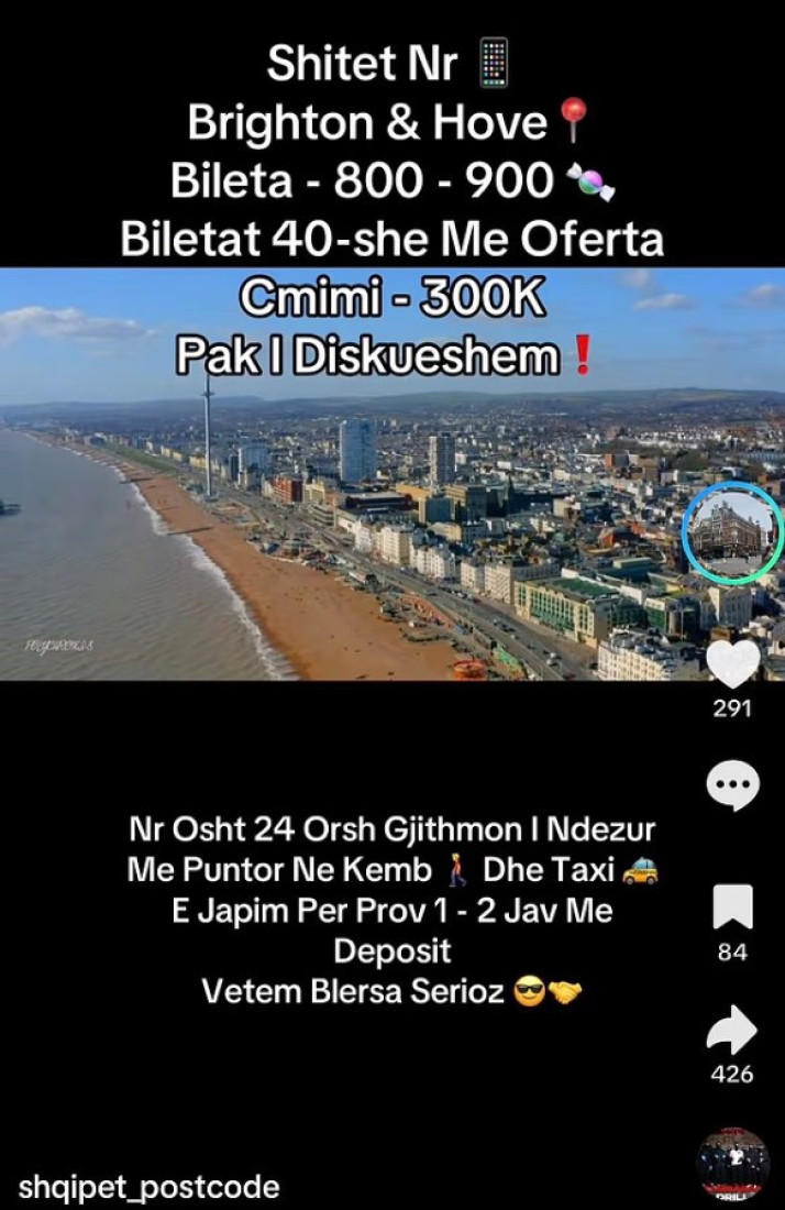 Po ashtu, një profil tjetër me emrin “shqipet_e_pikave” ka publikuar disa njoftime për shitjen e linjave të drogës në zona të ndryshme të Britanisë, duke përfshirë Gloucester dhe Leicester, me çmime që variojnë nga 90 mijë deri në 140 mijë paund. Në këto njoftime pretendohet se nga kontaktet ekzistuese shiten qindra doza kokaine dhe sasi të konsiderueshme kanabisi çdo javë, duke u ofruar blerësve “garanci” dhe të drejtë testimi.