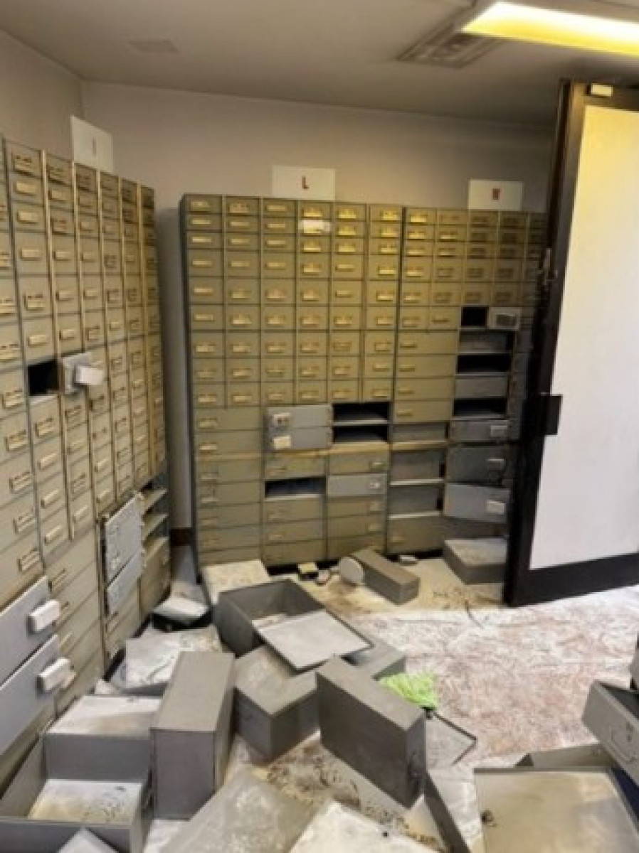 Dëshmitë nga vendngjarja tregojnë se autorët mbanin maska që përshkruanin aktorë të njohur amerikanë, ndërsa vepruan me shpejtësi për të zbrazur kasafortat dhe për të shkaktuar dëme të konsiderueshme në brendësi të bankës. Pamjet e publikuara tregojnë rafte të shkatërruara dhe kasaforta të boshatisura.