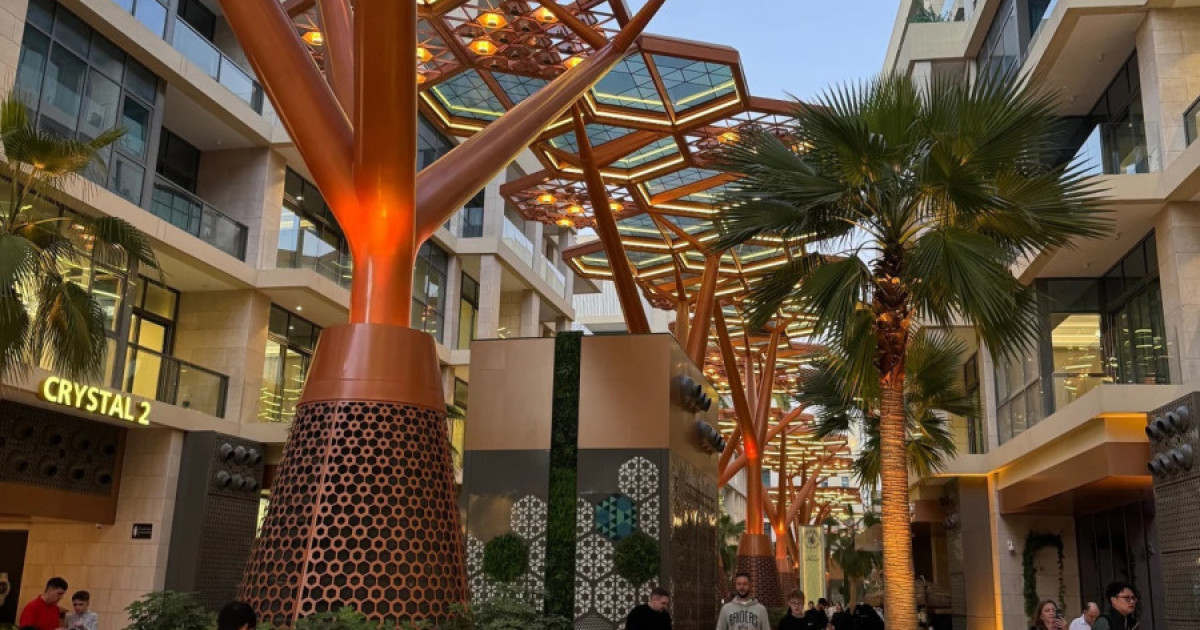 Gewan e çon këtë në një nivel tjetër. Crystal Walk ofron hije nga degët artificiale të mbuluara me 10 ton kristale që i japin emrin. Këto gjithashtu përdorin panele diellore për të kthyer diellin verbues në energji elektrike për të ndihmuar në furnizimin me energji të ajrit të kondicionuar. Ka edhe shatërvanë të vegjël uji për të spërkatur.