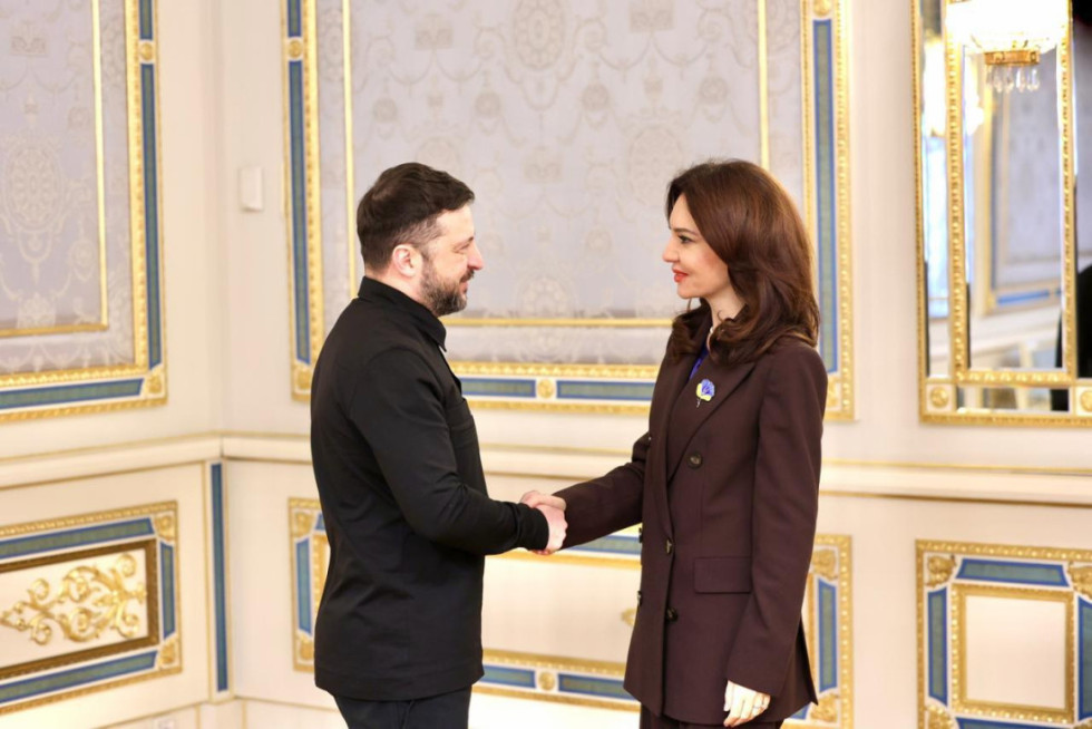 Presidenti i Ukrainës, Volodymyr Zelensky, i dorëzoi sot Urdhrin e Princeshës Olga, Klasi I, një nga dekoratat më të larta të shtetit ukrainas, ministres për Evropën dhe Punët e Jashtme, Elisa Spiropali.