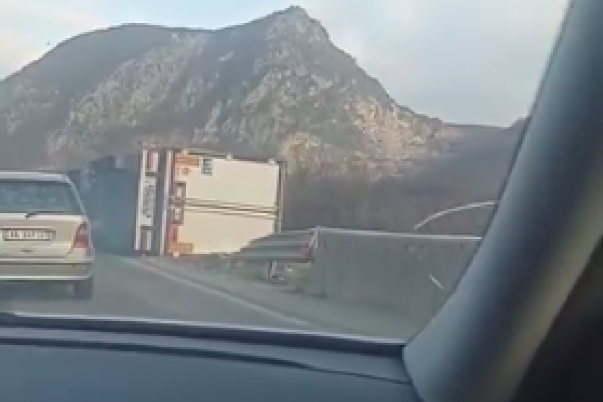 Burime nga vendngjarja bëjnë me dije se nuk ka persona të lënduar, ndërsa dëmet janë vetëm materiale. Kamioni është përmbysur në zbritje, teksa u ndihmua nga barrierat mbrojtëse që nuk e lejuan të rrëshqasë poshtë rrugës.