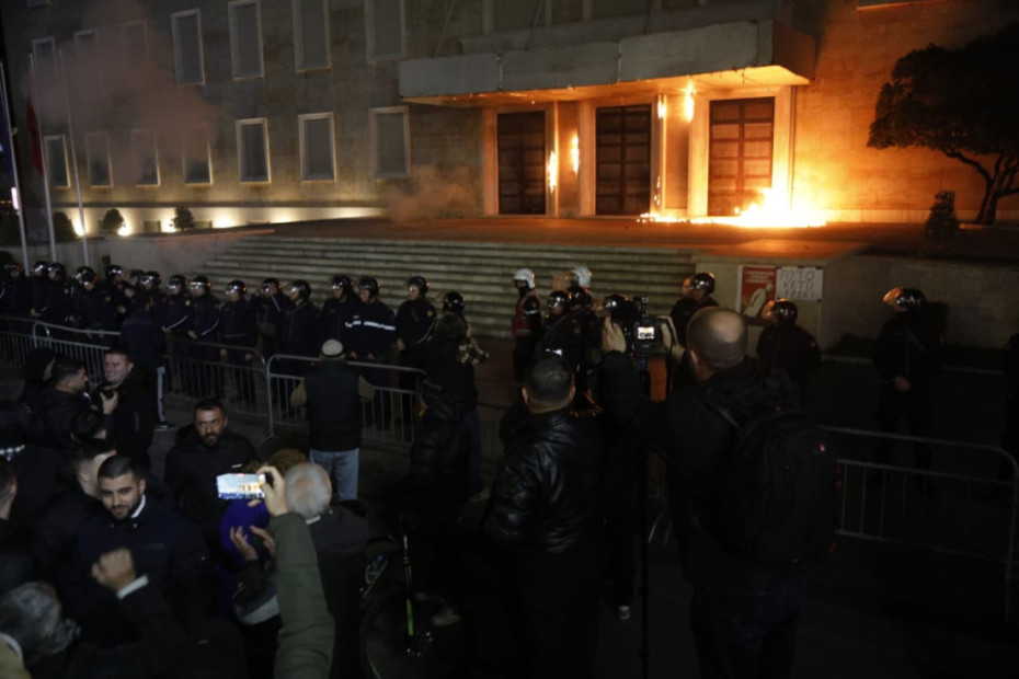 Ora 19:43 - Hidhën kapsolla e molotov në drejtim të kryeministrisë
