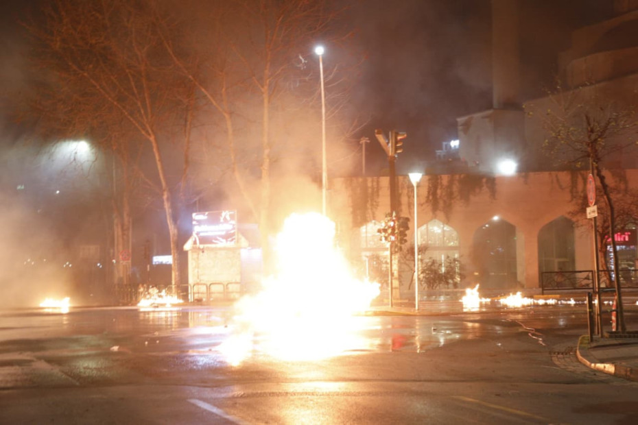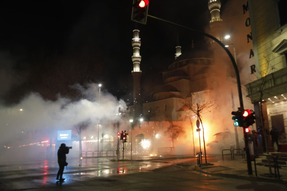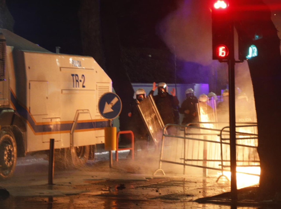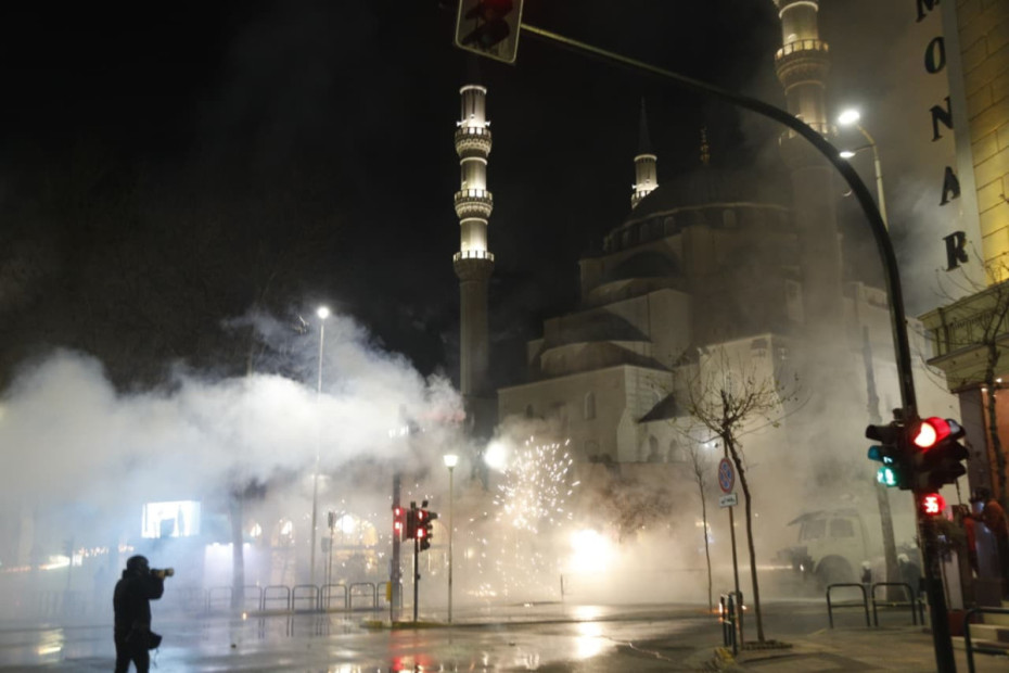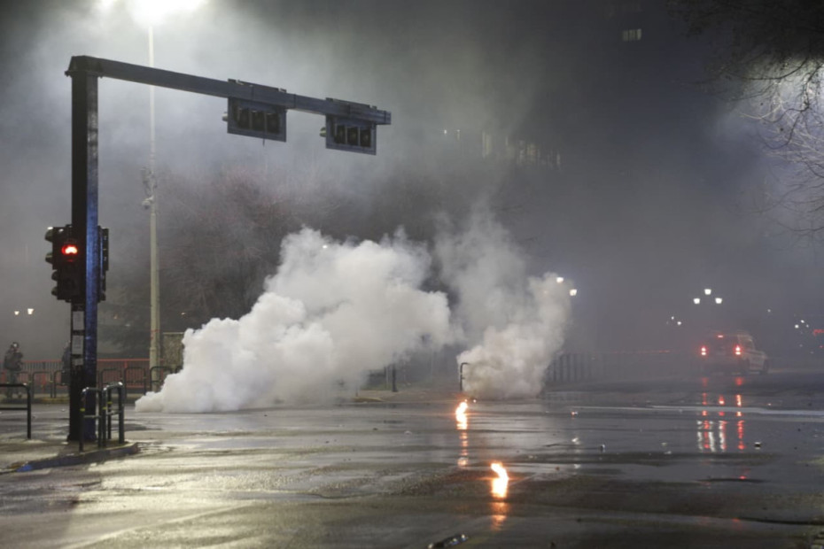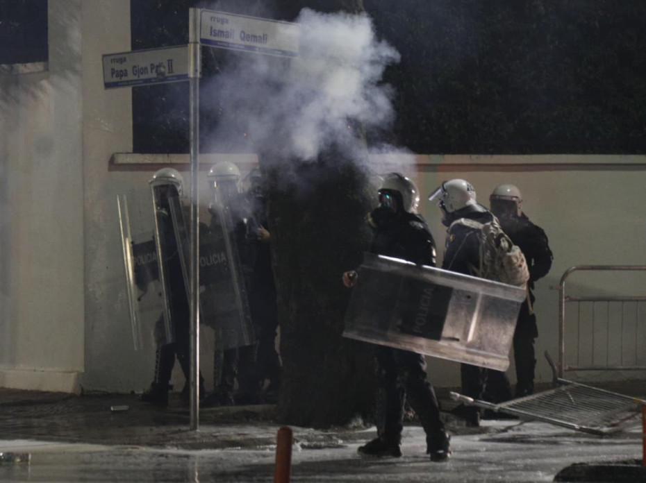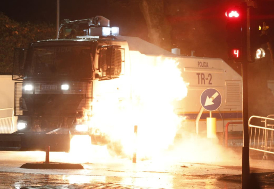 Ora 18:55 - Molotov dhe fishekzjarrë në drejtim të Kryeministrisë, policia përgjigjet me gaz lotsjellës dhe ujë me presion