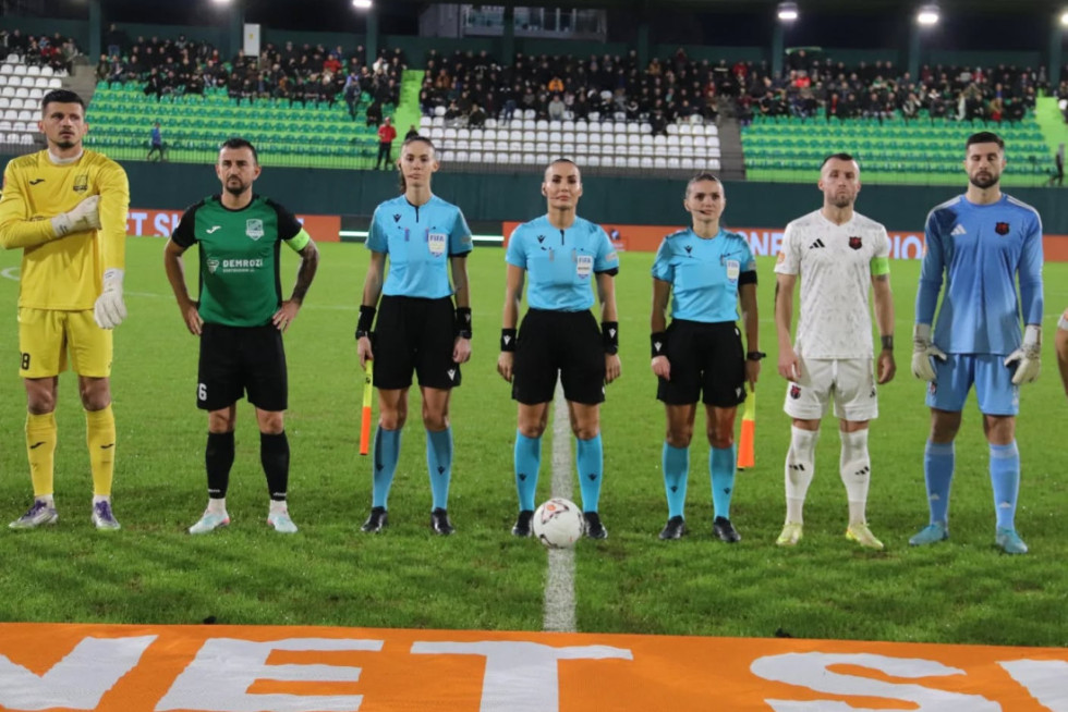 Në kampionatin shqiptar të futbollit u shënua një moment historik. Për herë të parë, në Kategorinë Superiore, nivelin elitar të futbollit në vend, një ndeshje është drejtuar plotësisht nga arbitre femra, si në rolin kryesor ashtu edhe në pozicionet e asistenteve.