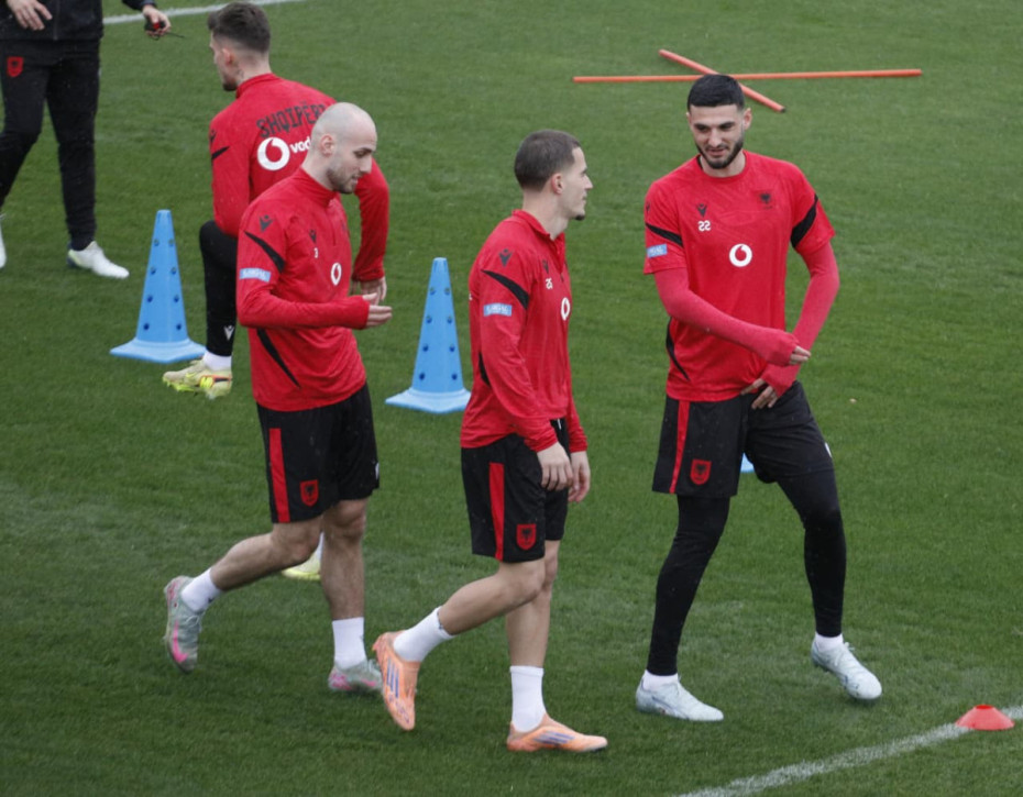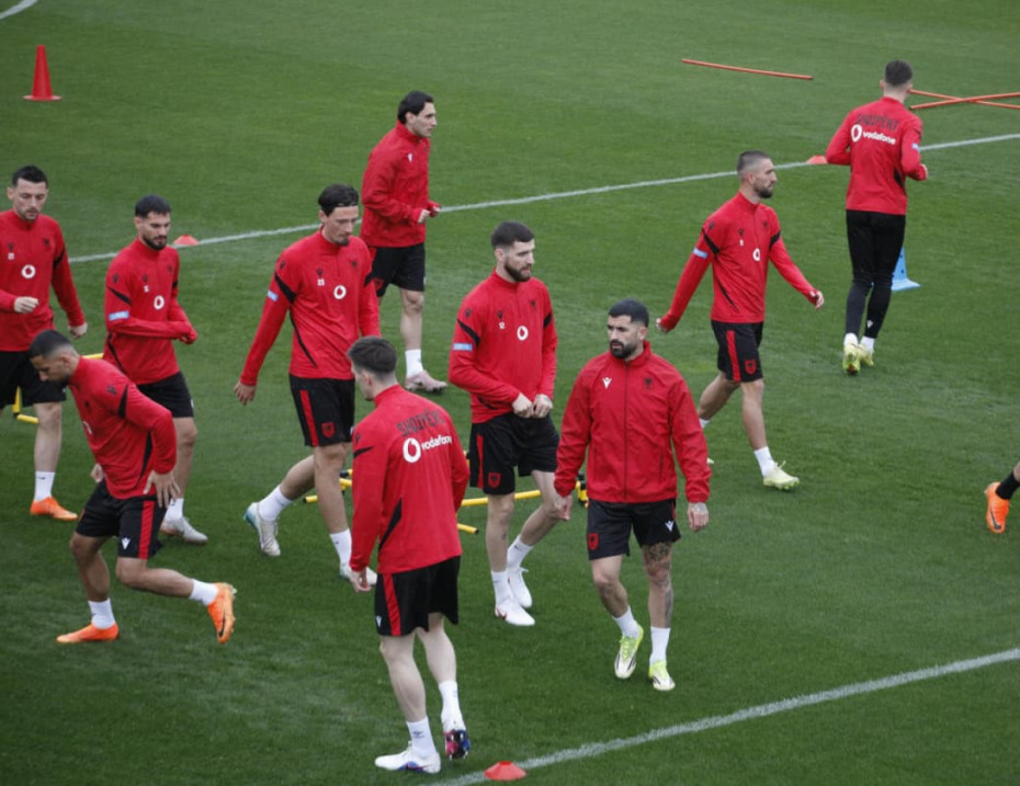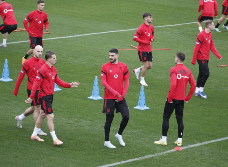 Kuqezinjtë janë grumbulluar në kryeqytet për këtë përballje vendimtare, e cila mund të hapë rrugën drejt kualifikimit në Botërorin e Amerikës. Në këtë seancë stërvitore ka qenë i pranishëm edhe presidenti i Federata Shqiptare e Futbollit, Armand Duka, i cili ka ndjekur nga afër përgatitjet e skuadrës.